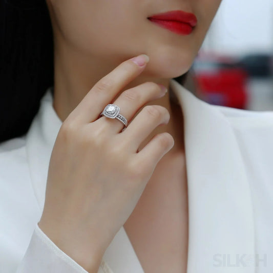 1 Ct Moissanite Sterling Silver Round Cut Halo Engagment Ring Ariella