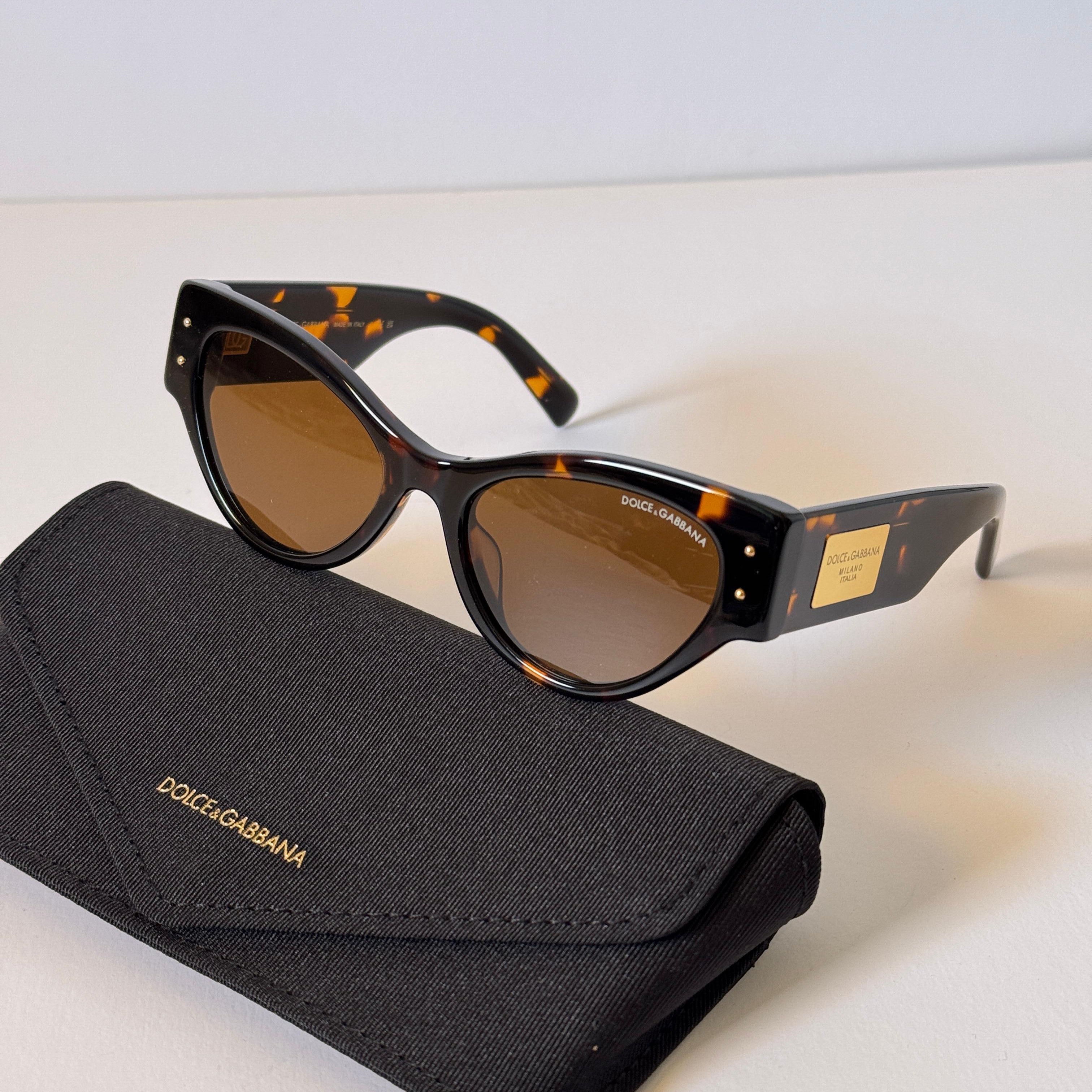 Inspired by the DG4461 design, these cat-eye sunglasses feature a bold tortoiseshell frame and a sleek gold-plated logo plaque on the temples. A retro-chic silhouette that brings vintage glamour into the modern era